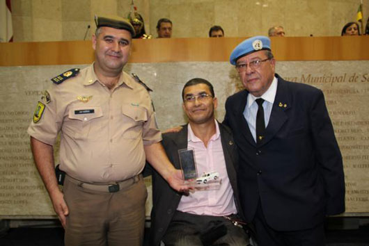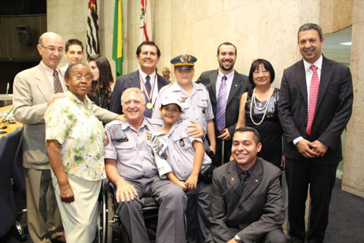 A entrega da Medalha “Eterno(a) Guerreiro(a)”, que é feita desde 2005, foi realizada desta vez no Plenário da Câmara Municipal de São Paulo, a convite do vereador Sargento Abou Anni.
