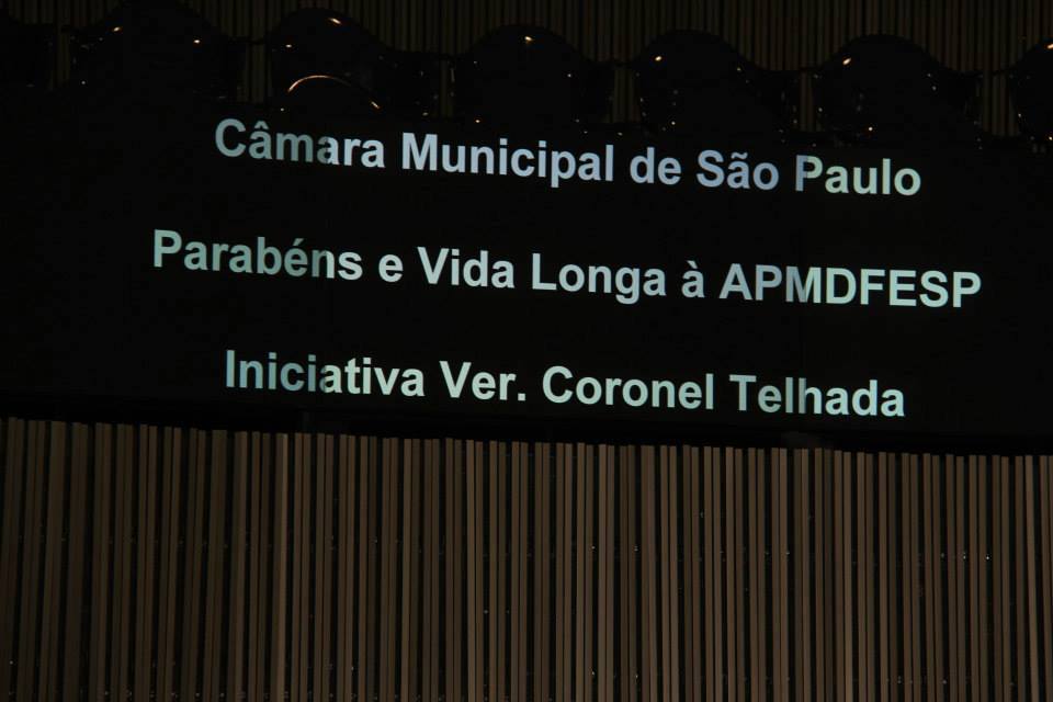 Está previsto no estatuto da Câmara o direito de cada vereador prestar oito homenagens oficiais da Casa durante o seu mandato, dentre elas podem estar a própria Salva de Prata, a Medalha Tiradentes e o Título de Cidadão Paulistano. A homenagem para a APMDFESP foi o meu primeiro projeto aprovado em plenário, o que me deixou muito contente, pois é um grupo sério, que merece o respeito da Cidade de São Paulo com sua honraria máxima para entidades.