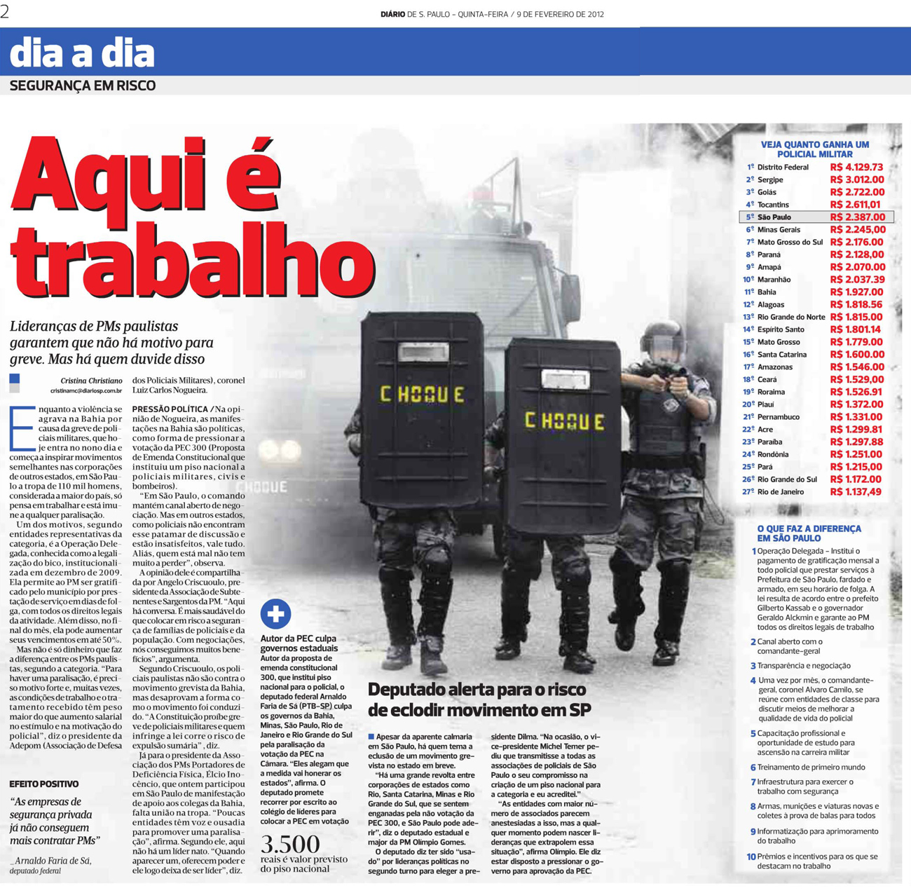 • Lideranças da PM garantem que não há motivo para greve (Diário de SP -09/02)